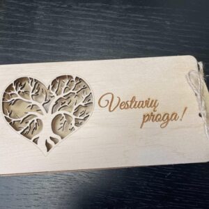 Produkto aprašymas Baltas, medinis vokelis pinigams su graviruotu užrašu „Vestuvių proga“. Tai puiki idėja kaip originaliai padovanoti pinigus vestuvių proga.